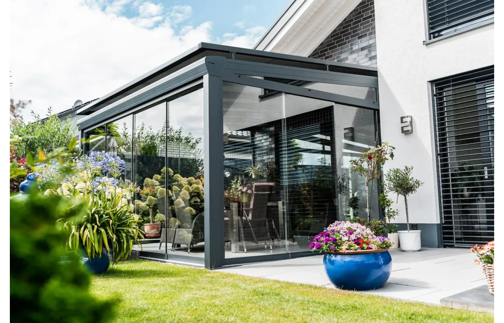 - Montage & Erweiterung Professionelle Installation inkl. Montagematerial in RAL-Farbe. Nachrüstbar mit Schiebewänden, Markisen oder LED-Beleuchtung.